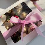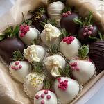 Свежая клубника, белый и молочный бельгийский шоколад , сублимированная малина
