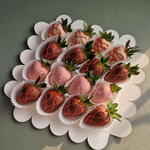Клубника свежая, шоколад белый бельгийский, шоколад молочный бельгийский. Украшен посыпками. В количестве 16 шт.