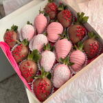 остав:свежая клубника в бельгийском белом и молочном шоколаде - 16 шт, Состав шоколада: какао-масло, тертое какао, сухое цельное молоко, сахар, натуральные лецитин и ваниль