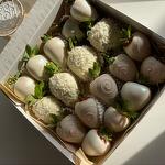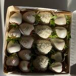 Свежая клубника , белый бельгийский шоколад, кокосовая стружка