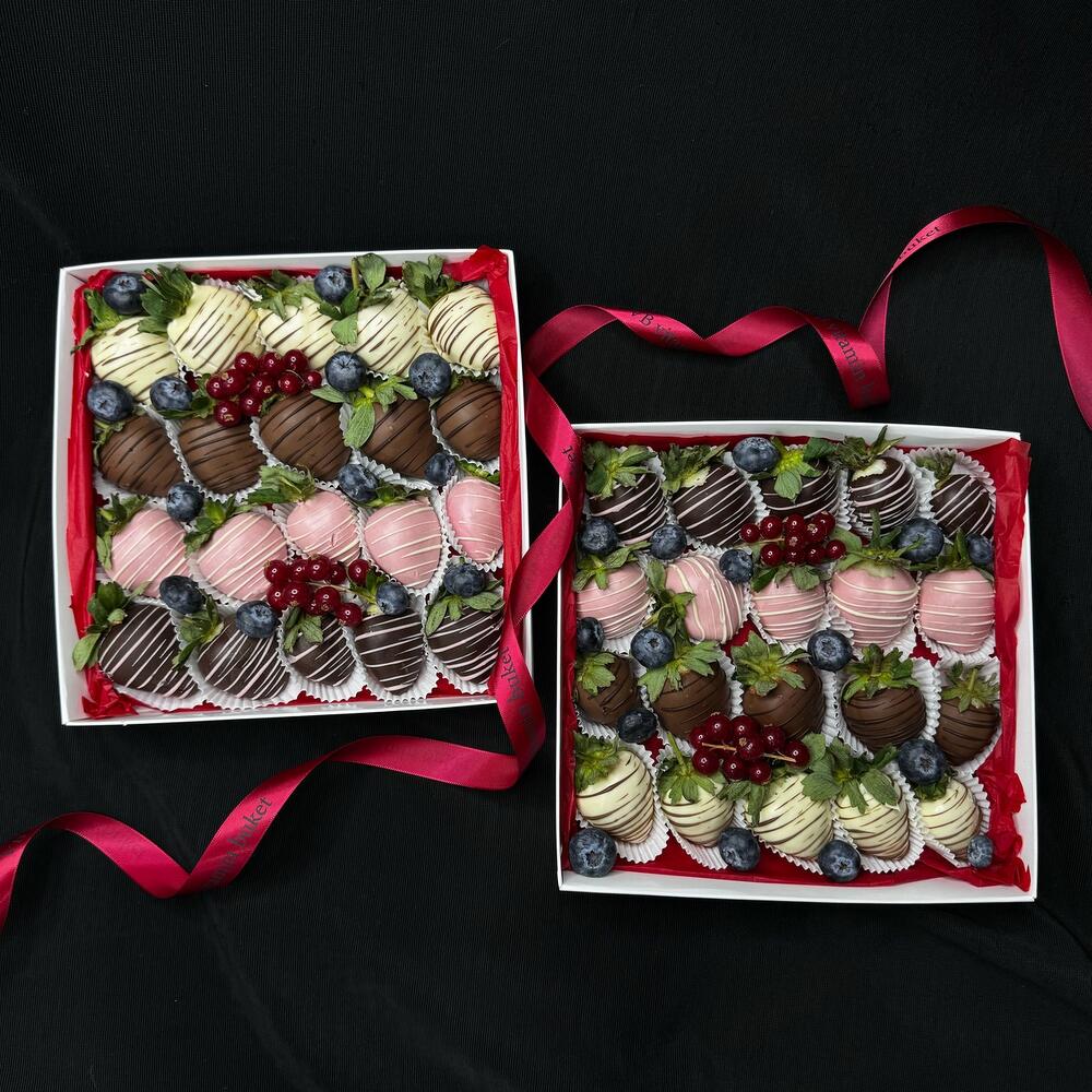 Клубника в бельгийском шоколаде: белый, черный, молочный Голубика, смородина