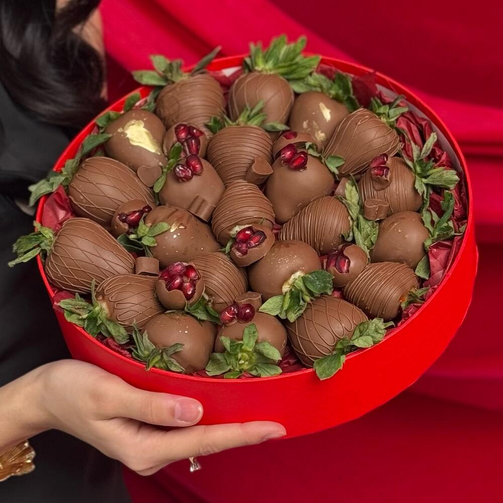 Отборная клубника в молочном шоколаде Callebaut в стильном подарочном боксе