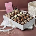 Клубника в шоколаде - 24, Орехи - 1, Коробка подарочная с ручками - 1
