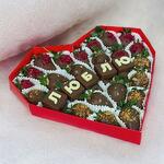 Клубника в бельгийском шоколаде и шоколад со словами «люблю»