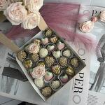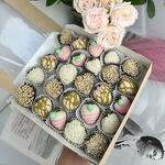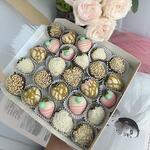 Свежая клубника в белом и молочном бельгийском шоколаде, ореховая посыпка