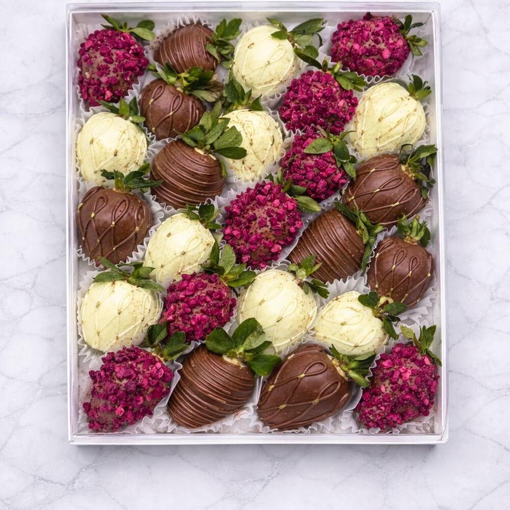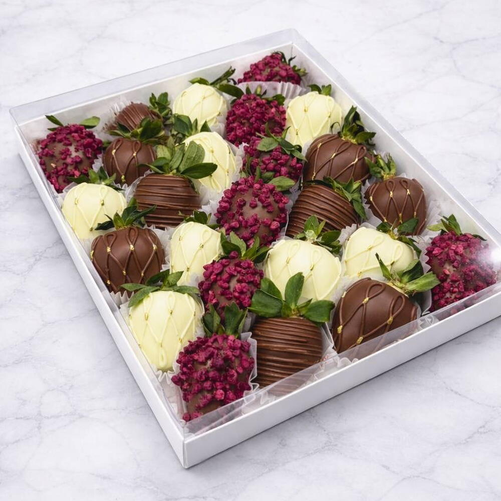 Свежая, сочная клубника, покрытая слоем нежного шоколада, который идеально подчёркивает её натуральную сладость. Гармоничное сочетание ягодной свежести и насыщенного шоколадного вкуса делает этот десерт изысканным и универсальным подарком — для романтического повода, праздника или приятного комплимента без повода.