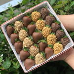 Сочная свежая клубника, натуральный шоколад бельгийский шоколад, шоколадные крошки, дробленный арахис.