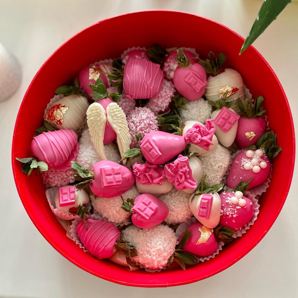 Свежая клубника, бельгийский белый шоколад, кокосовая стружка