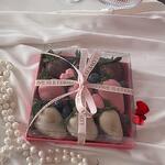 Подарочная коробочка с 9 клубничками в молочном шоколаде, оформленная лентой