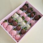 Клубника в шоколаде в розовой упаковке