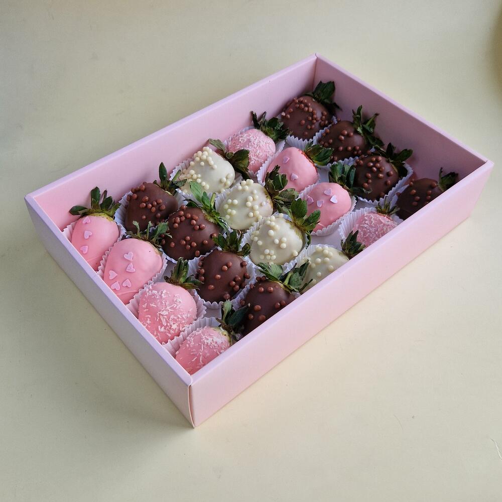 Клубника в шоколаде в розовой упаковке