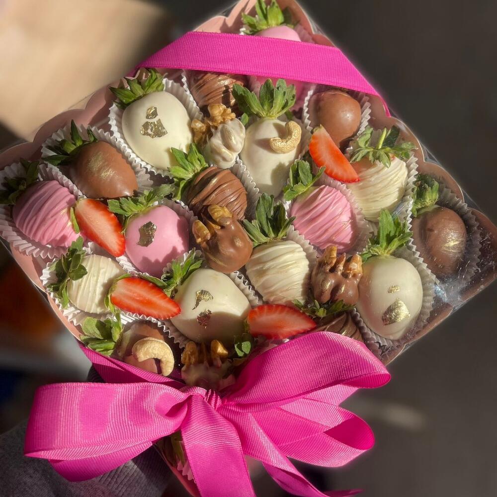 20 клубник в шоколаде, грецкий орех в шоколаде