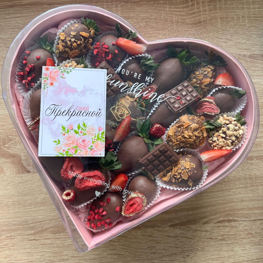 Клубника в шоколаде 25 шт., мини плитки - 3 шт., сублимированные ягоды