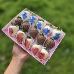15 шт клубники в шоколаде С сублимированной клубникой, рисовыми шариками и с съедобными цветами