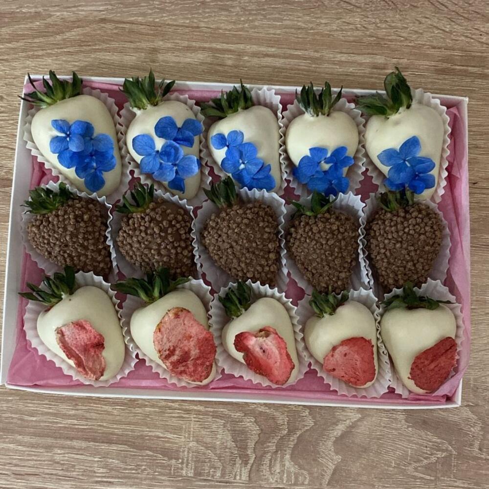 15 шт клубники в шоколаде С сублимированной клубникой, рисовыми шариками и с съедобными цветами