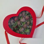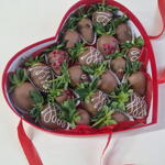 Состав: клубника свежая импортная, шоколад молочный бельгийский, какао тертое, какао масло, сухое молоко, посыпки сахарные. Используется исключительно качественный бельгийский шоколад.