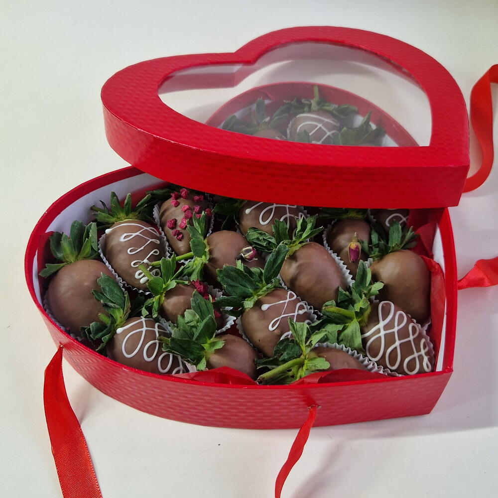Хранить в холодильнике не более 24 часов. Перед употреблением оставить при комнатной температуре на 15 минут. В количестве 20 шт. Количество в зависимости от колибровки клубники, но коробка будет полная. Отличный подарок для мамы или девушки.
