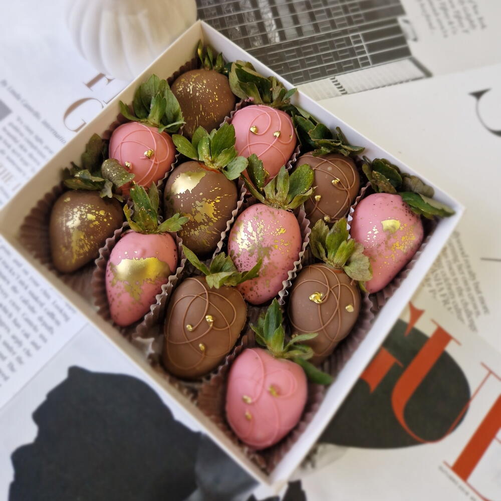 12 Клубник в молочном и розовом шоколаде