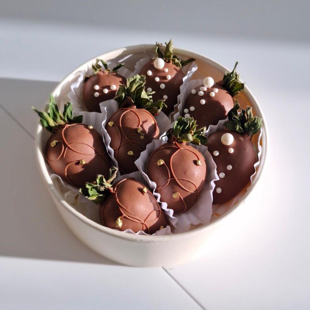 Sweet Classic от Sweet Realm — это свежая отборная клубника, покрытая нежным бельгийским молочным шоколадом и украшенная аккуратным кондитерским декором. Идеальный вариант для подарка, комплимента или сладкого удовольствия без лишних вкусовых добавок. 🔹 Возможные варианты исполнения: только молочный шоколад только белый шоколад по запросу возможно исполнение в белом шоколаде или микс ❗ Внешний вид изделия может незначительно — каждый набор изготавливается вручную.