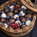Клубника в темном, молочном и белом бельгийском шоколаде с добавлением свежей голубики