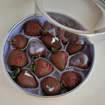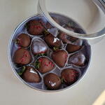 Клубника в молочном шоколаде в очень красивой коробке будет идеальным подарком на любой случай. Хранить в холодильнике не более 24 часов. Перед употреблением оставить при комнатной температуре на 15 минут. В количестве 18 шт. Количество в зависимости от колибровки клубники, но коробка будет полная. Отличный подарок для мамы или девушки.