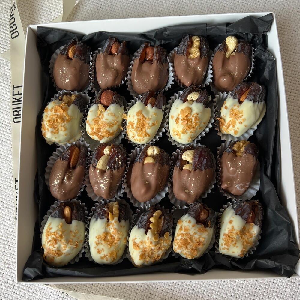 Отборные королевские финики в бельгийском шоколаде callebaut - это прекрасное сочетание сладкого вкуса финика, с шоколадным покрытием, дополненное ореховыми начинками. Отличный вариант подарка для ценителей сладкого.