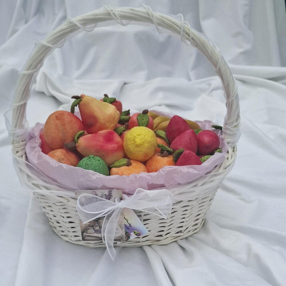 Корзинка фруктов с начинками идеальное сочетание для подарка и зимой и летом. Изготовленно из натурального ягодного или фруктового пюре. Порадуйте своих близких и родных. Все начинки входят в комплект корзины.