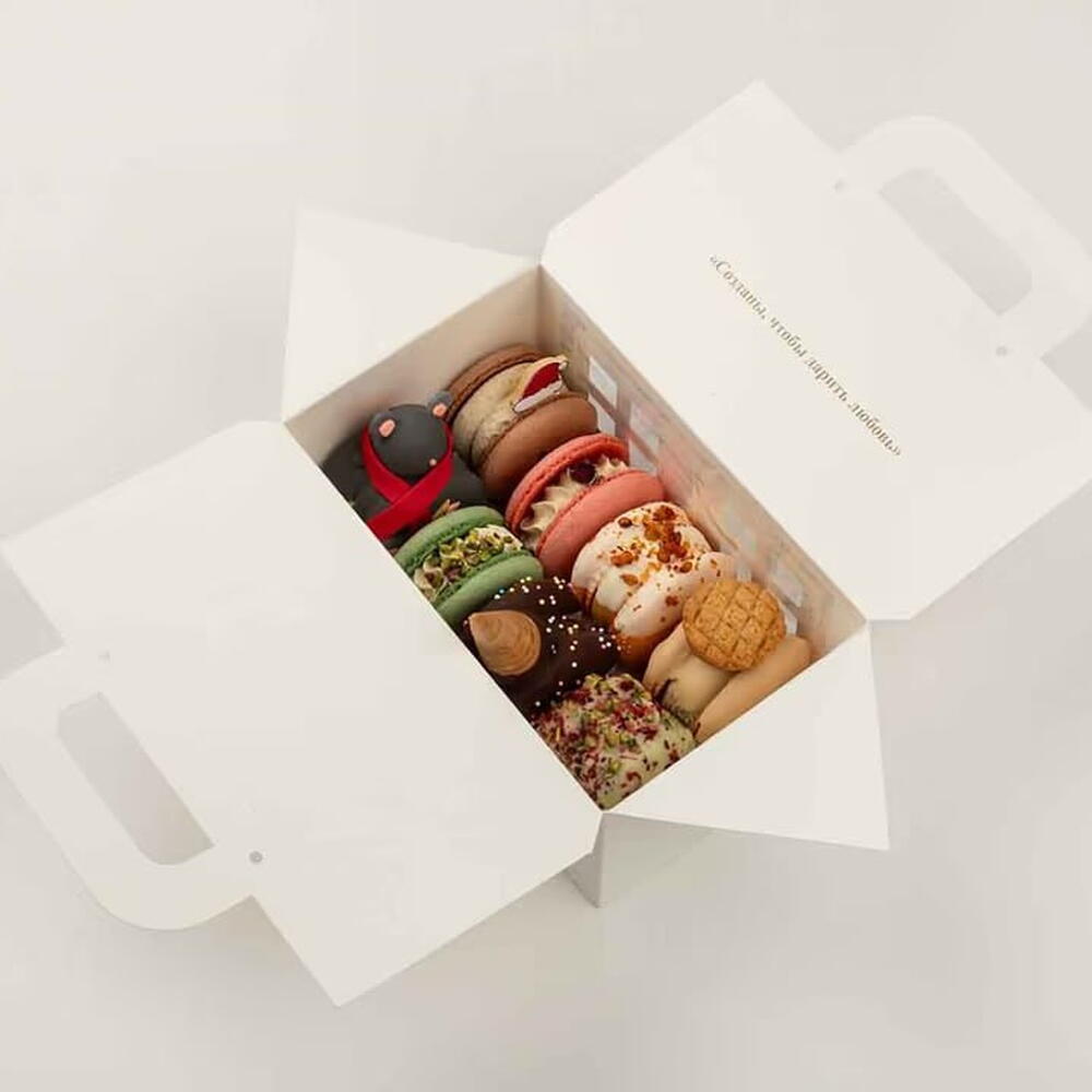 Макарон «Реми» — 8 шт. (ассорти) Авторский бокс из 8 макарон с фирменными вкусами «Реми». Нестандартные сочетания, глубокие ароматы и сбалансированная сладость. В составе: • Бородинский хлеб с сыром • Корица–яблоко • Талкан–грецкий орех • Улун с розой и клубникой • Фисташка–малина • Фисташка–улун • Шоколад–орех Один из вкусов может повторяться — для идеального баланса ассорти. Подходит для подарка или знакомства с линейкой «Реми».