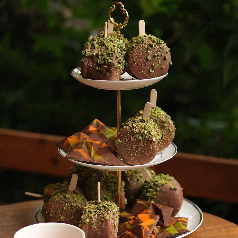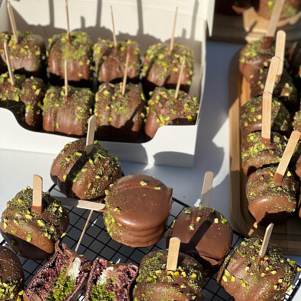 масляный, катаифи, дубайский шоколад, натуральные ароматизаторы (кардамон, розовая вода), пищевые красители.
