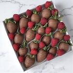 Роскошный сладкий подарок, который подчеркнёт особенность любого события! Коробка «Малиновый дуэт» включает свежую ароматную клубнику, покрытую нежным молочным шоколадом, дополненную спелой малиной. Все ягоды аккуратно выложены в индивидуальные бумажные капсулы, что делает композицию эффектной и удобной для подачи.