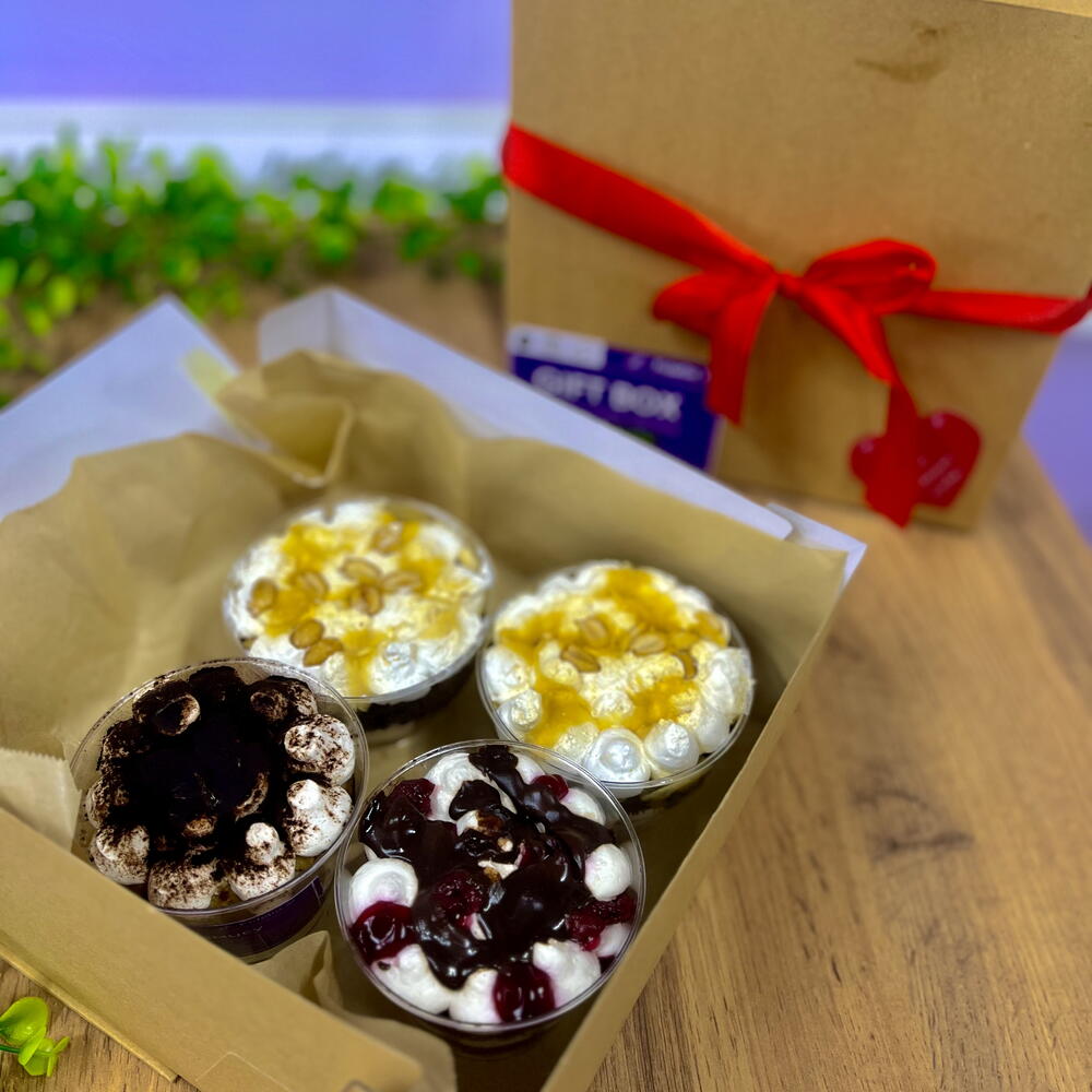 Набор из 4 нежных трайфлов в индивидуальных стаканчиках. Сочетание мягкого бисквита, воздушного крема, шоколада и свежих ягод делает десерт лёгким и изысканным. Отличный вариант для угощения гостей или сладкого подарка.