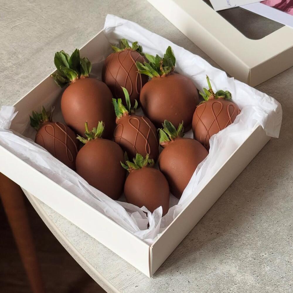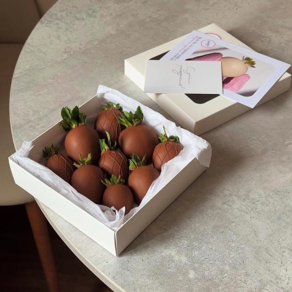 Сет из 9 клубник в шоколаде — маленькое удовольствие с большим вкусом Идеальный сет для тех, кто ценит качество и эстетику! 9 сочных отборных клубник, покрытых премиальным халяль бельгийским шоколадом, подарят вам незабываемое наслаждение. Каждая ягода — это гармония свежести, сладости и нежной текстуры шоколада. Идеально, чтобы побаловать себя или сделать небольшой, но стильный подарок. Маленький формат, большое удовольствие! Varda — наслаждайтесь моментами сладкого счастья. 🍓✨