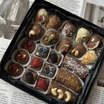 Коробочка монпасье сочетает в себе клубнику в шоколаде, банан в шоколаде, шоколад с ягодами Состав: какао-масло, тертое какао, сухое цельное молоко, сахар, натуральные лецитин и ваниль Клубника в шоколаде - 10 ягод Банан в шоколаде - 3 штуки Шоколад с добавлением ягод - 9 штук Посыпки и дополнения: кокосовая стружка, инжир, фисташка, кешью, голубика, малина, ежевика, гранат, инжир