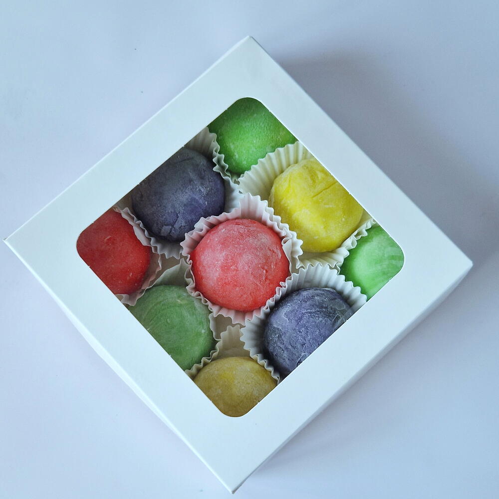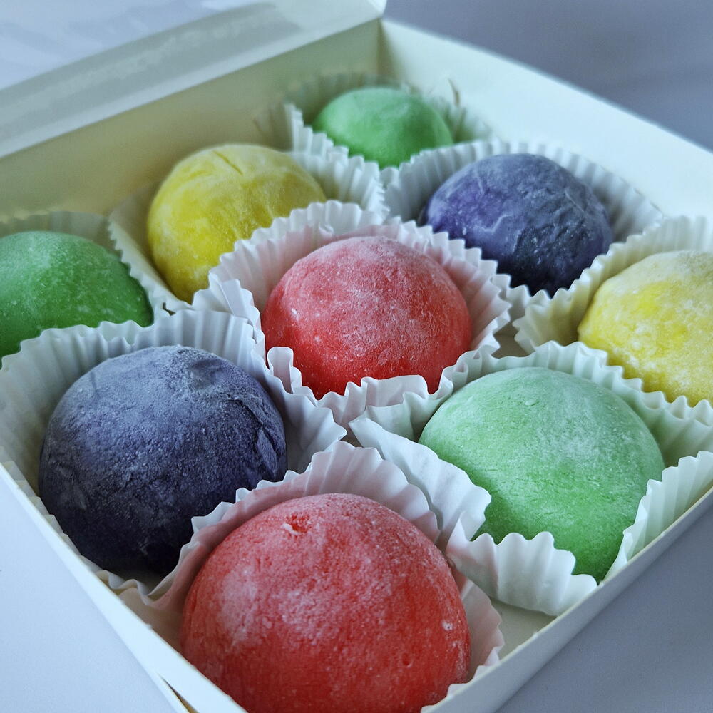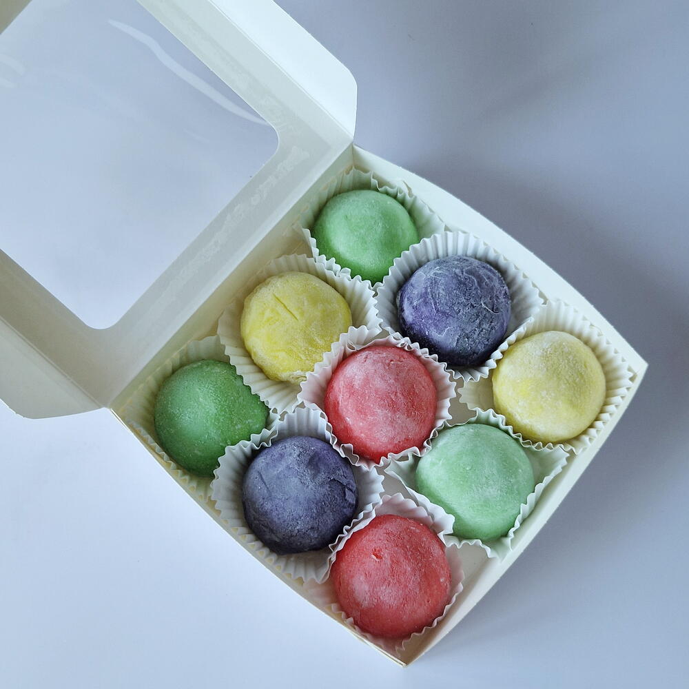 Вкусы: 1. Малина-фисташка 2. Клубника-мята 3. Смородина-лимон 4. Кофе-лимон Очень нежные моти, подходит для подарка на любое мероприятие. Имеются положительные отзывы. Хранить в холодильнике не более 48 часов.