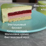 Малина пюре, яйца, фисташковая паста, миндальная мука, масло, сливки, пектин, желатин, белый шоколад.