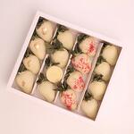 10 клубник в бельгийском шоколаде ассорти В дополнении используются посыпки: кокосовая стружка, сублимированная малина, вафельные шарики Шоколад ручной работы 1 шт