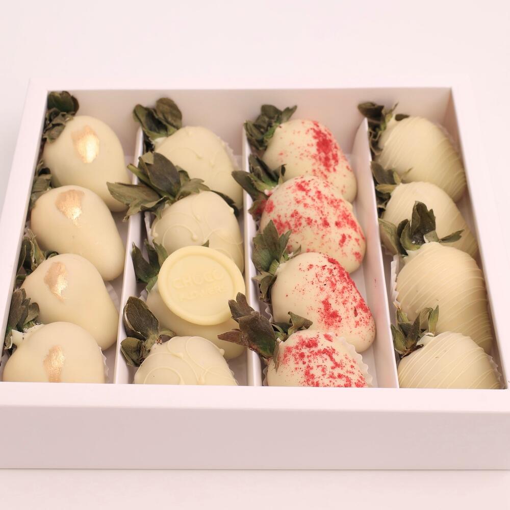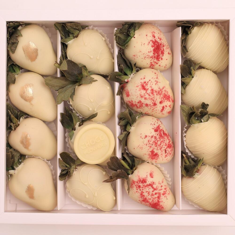 10 клубник в бельгийском шоколаде ассорти В дополнении используются посыпки: кокосовая стружка, сублимированная малина, вафельные шарики Шоколад ручной работы 1 шт