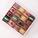 16 штук пирожных макарон ассорти с дополнением в виде 2-3 шт ягод свежей голубики и с сублимированной малиной 10 гр