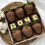 Отборная клубника в бельгийском молочном шоколаде Callebaut 6 шт с надписью Доче