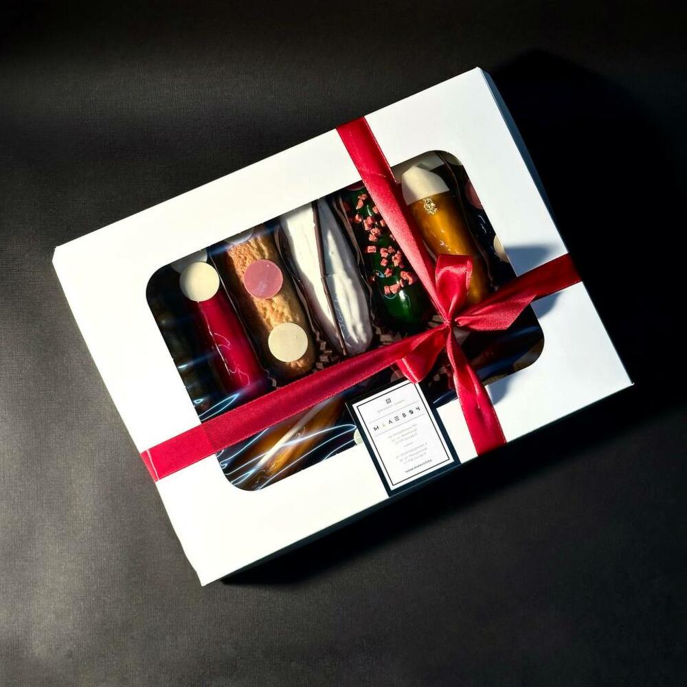 Набор из 10 эклер идеально подойдет для сладкого подарка, праздничного стола или просто для удовольствия в кругу семьи и друзей.