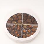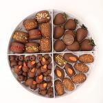 Цилиндр с 4 отсеками: Макароны в молочном шоколаде: 7-9 шт Финики в молочном шоколаде: 7-9 шт Клубника в молочном шоколаде: 7-9 шт Голубика в шоколаде: 180 гр Малина в шоколаде: 45 Гр
