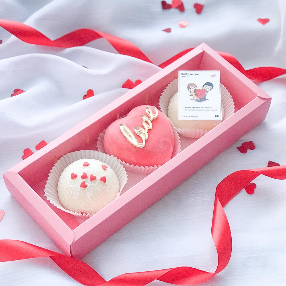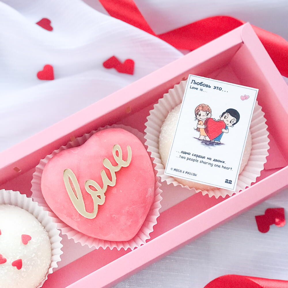 Набор пирожных моти на «Любовь это»,романтический презент для девушки или парня,для второй половинки