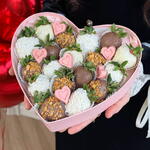17 ягод в наборе ( отборная свежая клубника) Молочный Бельгийский шоколад Callebaut (сахар, масло какао, сухое цельное молоко, какао тертое, эмульгатор: соевый лецитин) Подарочная коробка с прозрачной крышкой и бантиком