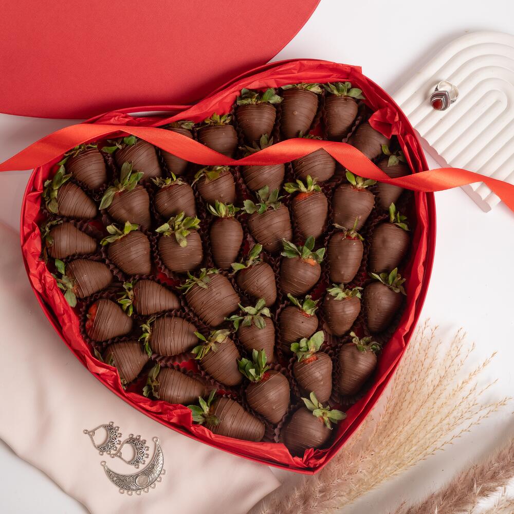 Большое сердце с 43 шт клубники в бельгийском молочном шоколаде.