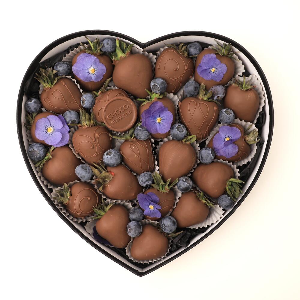 Клубника в молочном шоколаде : 20-25 шт Свежая голубика : 50 гр голубики