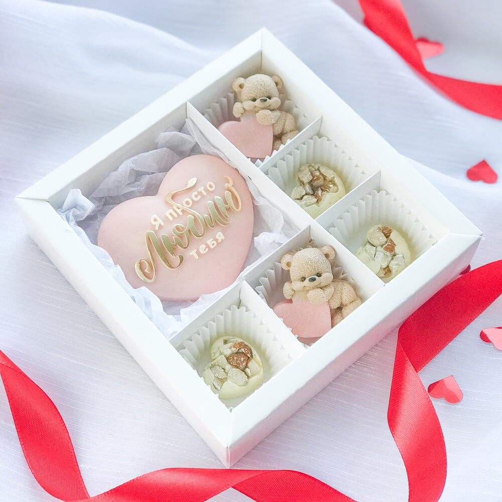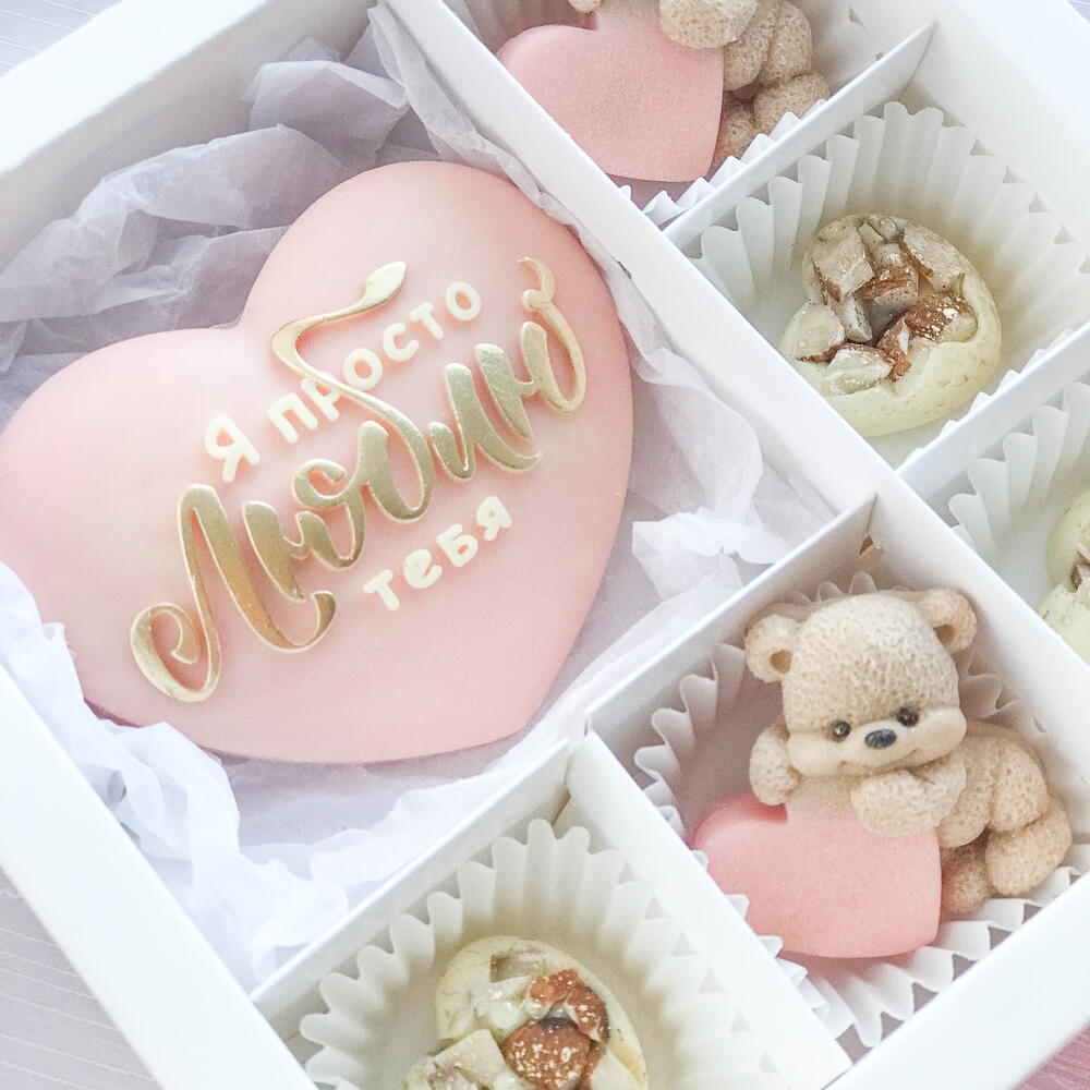 Нежный набор из бельгийского шоколада. Расскажите о своих чувствах без лишних слов❤️ В наборе: Конфеты из белого шоколада с добавлением миндаля Фигурки из бельгийского шоколада
