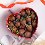 В наборе клубника в бельгийском молочном шоколаде с оформлением из голубики.