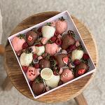 Элегантная коробка с женскими мотивами В составе: Клубника из ассорти шоколада 16 шт с дополнением в виде сублимированной малины и вафельных шариков Голубика в шоколаде 100 гр Свежая малина 35 гр