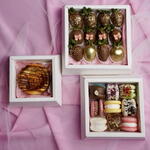 Микс набор из макаронс, клубники в шоколаде и испанского чизкейка.