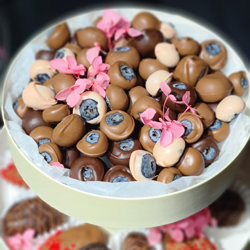 Голубика в темном бельгийском шоколаде callebaut, голубика в молочном бельгийском шоколаде callebaut, клубника в тёмном бельгийском шоколаде callebaut, клубника в молочном бельгийском шоколаде callebaut ,украшкнная воздушным рисом,клубника в розовом бельгийском шоколаде calkebaut, украшенная кокосовой стружкой. Кролевские финики с грецким орехом внутри в тёмном бельгийском шоколаде callebaut, королевские финики в молочном бельгийском шоколаде callebaut,украшенные кокосовой стружкой . Печенье Орео.
